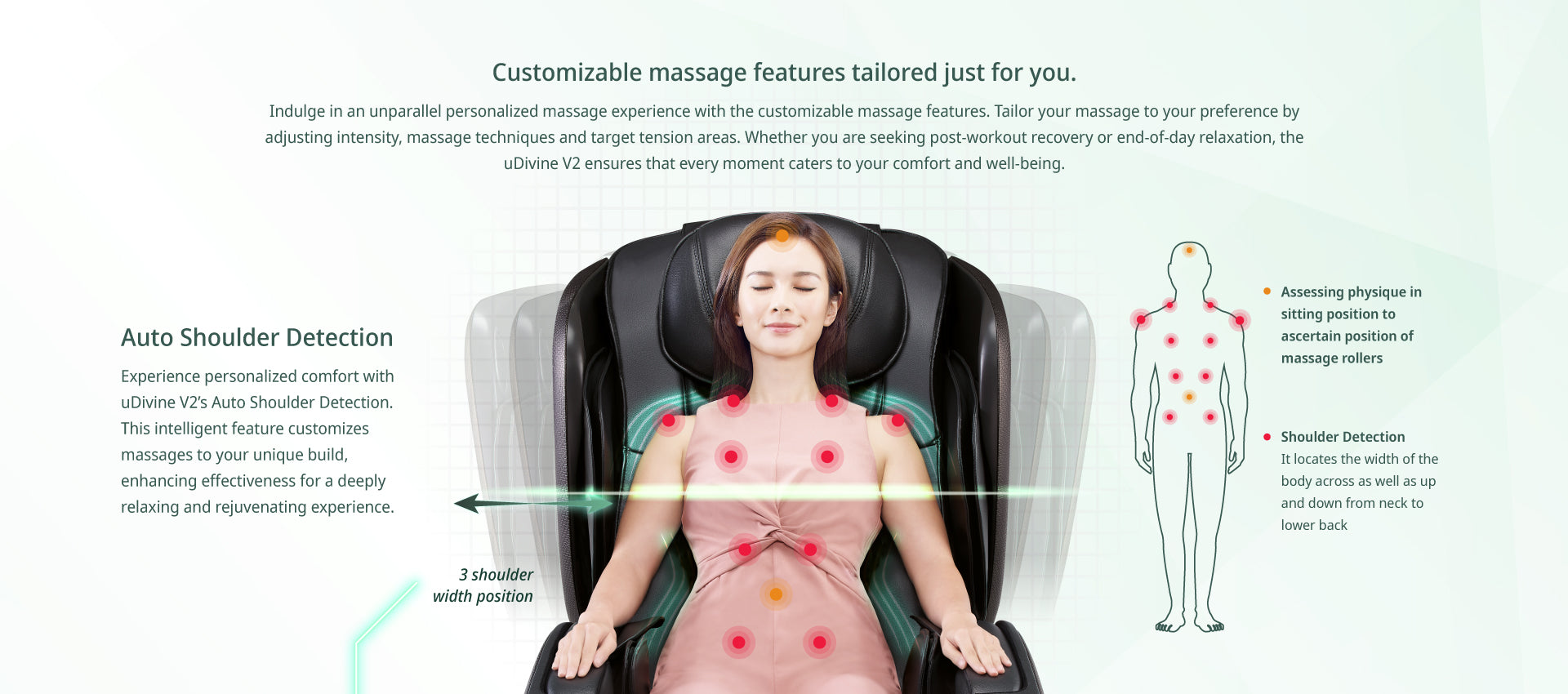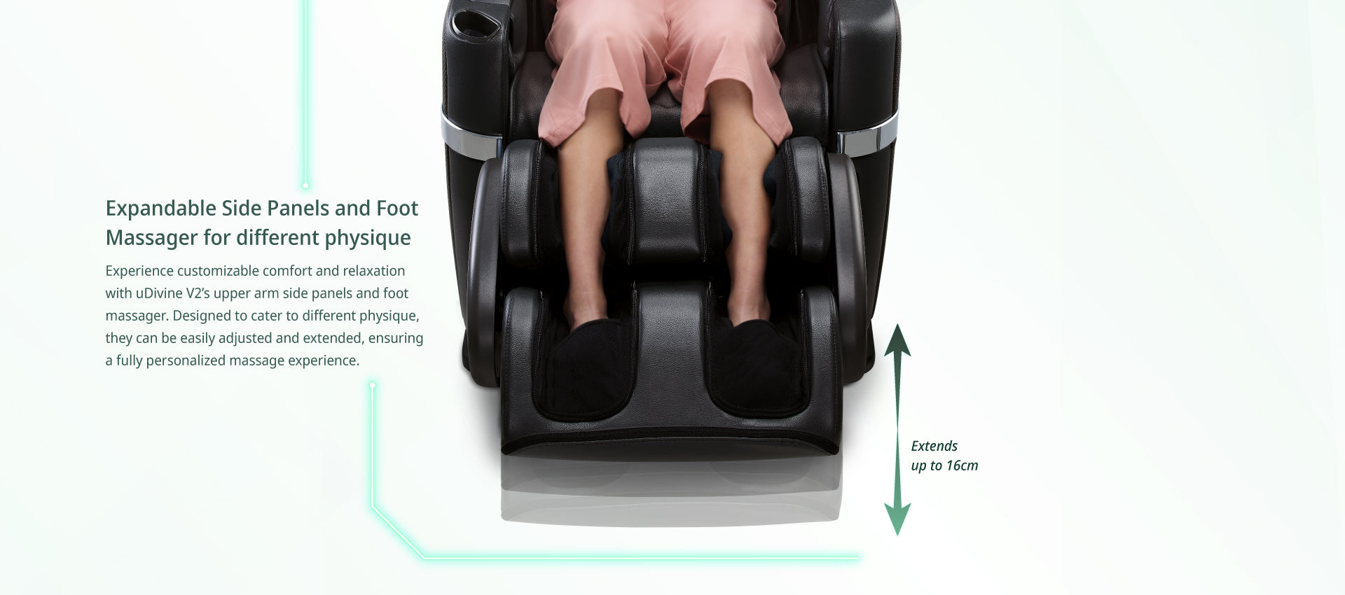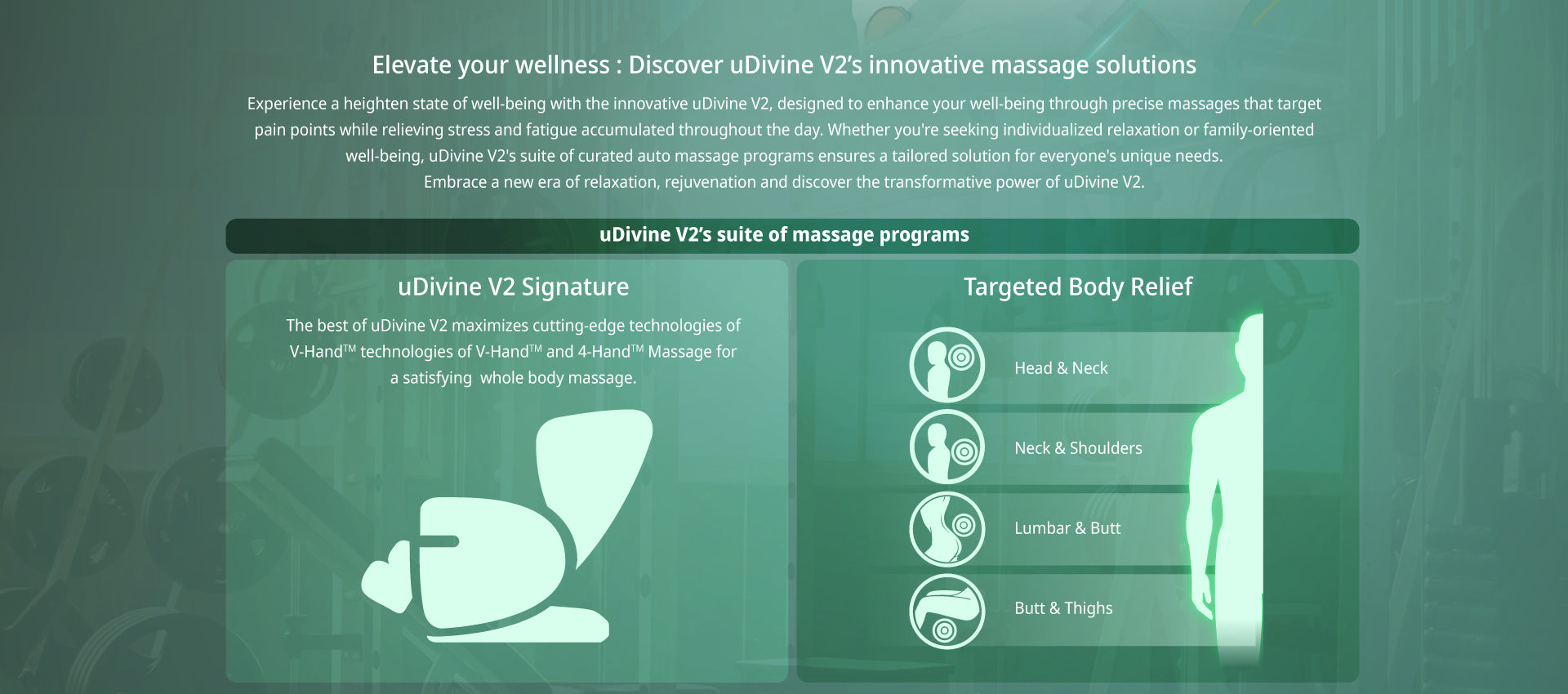 Wellness for the New Generation. Enhance your well-being with uDivine V2’s precise massages that target your pain points accurately and alleviate stress and fatigue accumulated over the day.