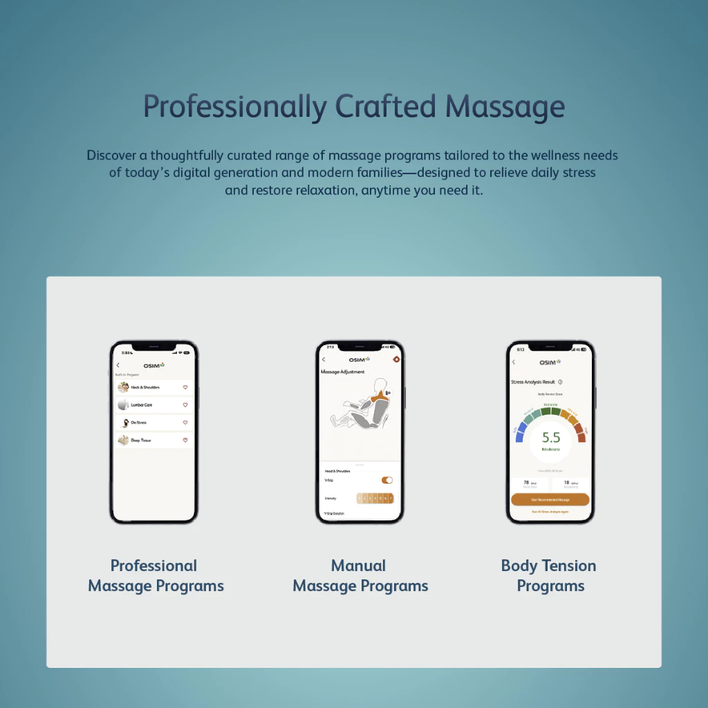 - NFC Smart Connection to OSIM Well-Being App