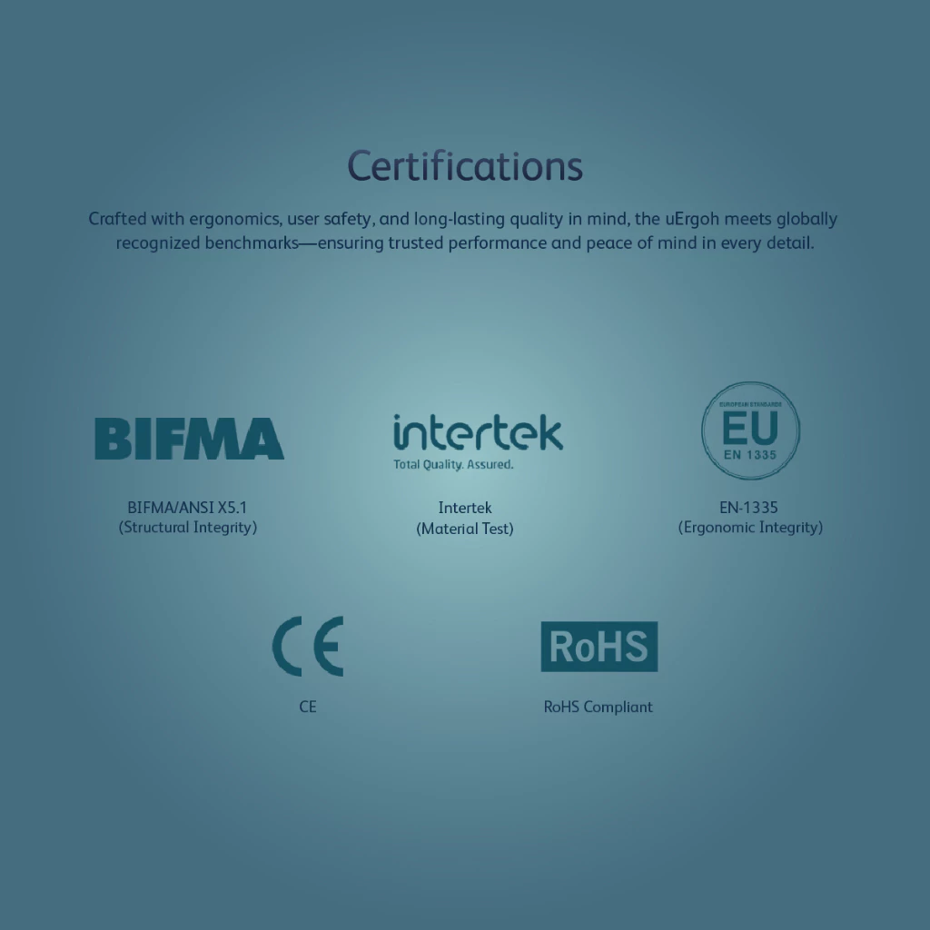 - EN 1335-1 Ergonomics Standards Certificate