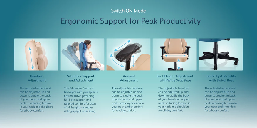 - S-Shaped Lumbar Support and Adjustment