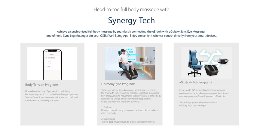 - Connect, sync & enjoy head-to-toe massage with uPhoria Sync and uGalaxy Sync in harmony