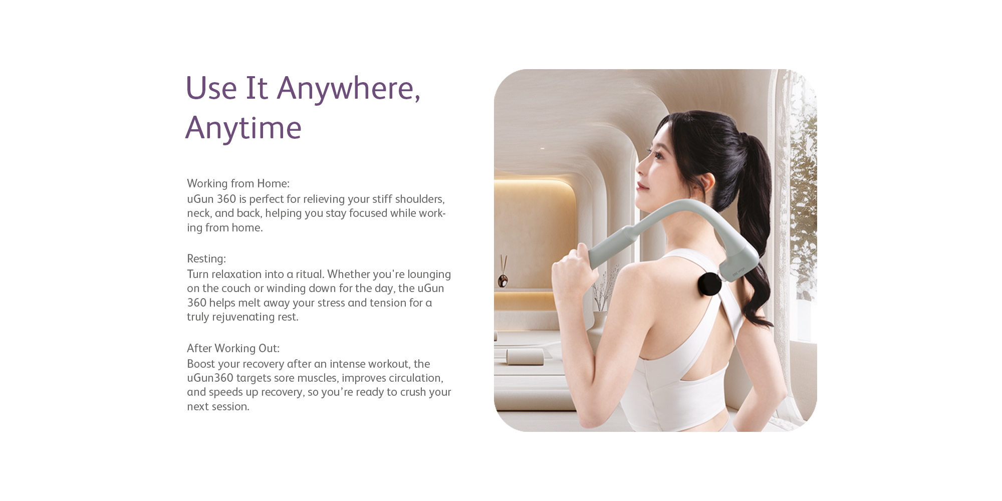 uGun 360 is perfect for relieving your stiff shoulders, neck, and back, helping you stay focused while working from home.