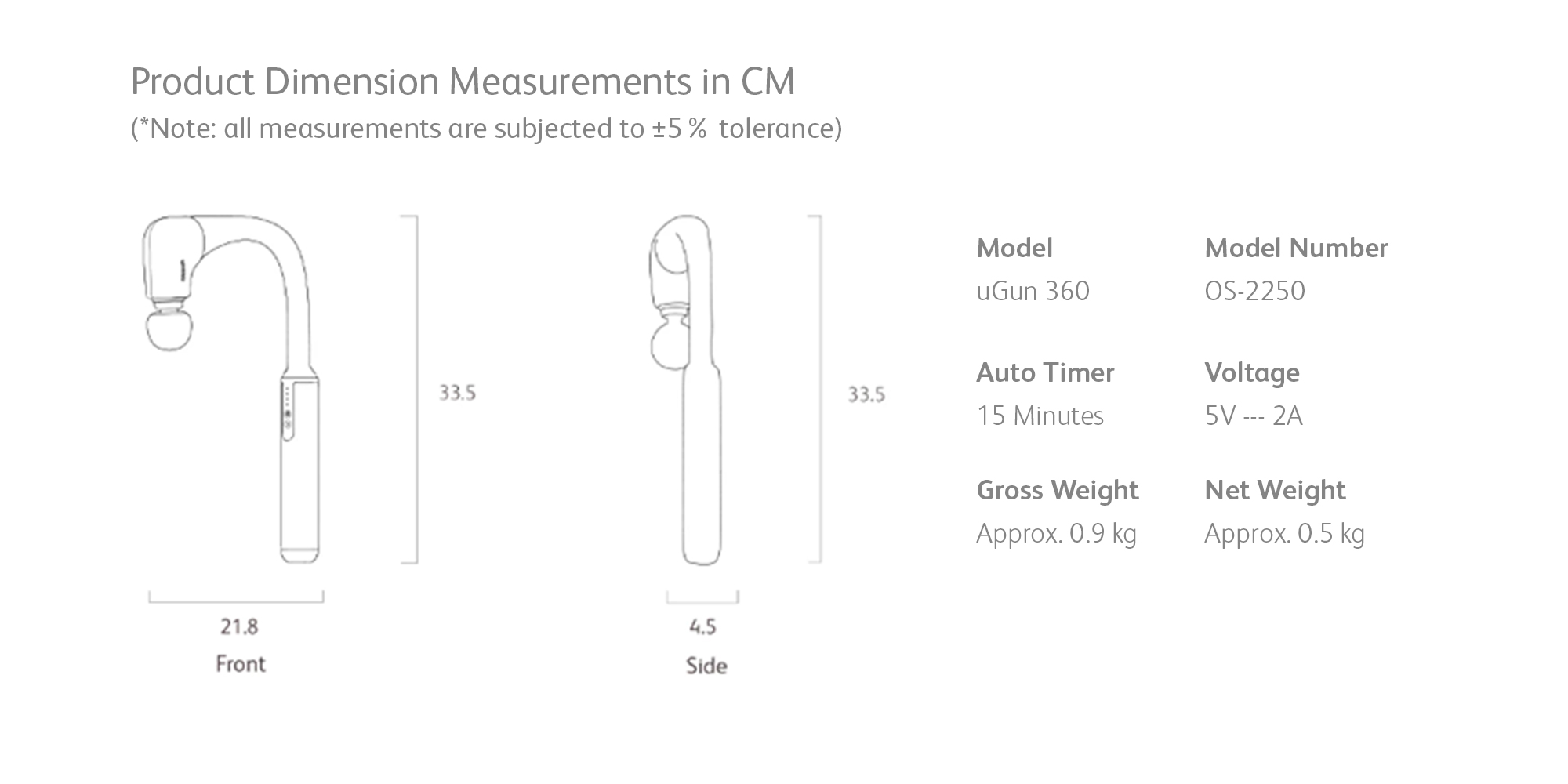 Weighing just 525g, uGun 360 is designed for effortless handling and extended use.